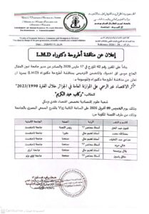 إعلان لطلبة السنة الأولى ماستر